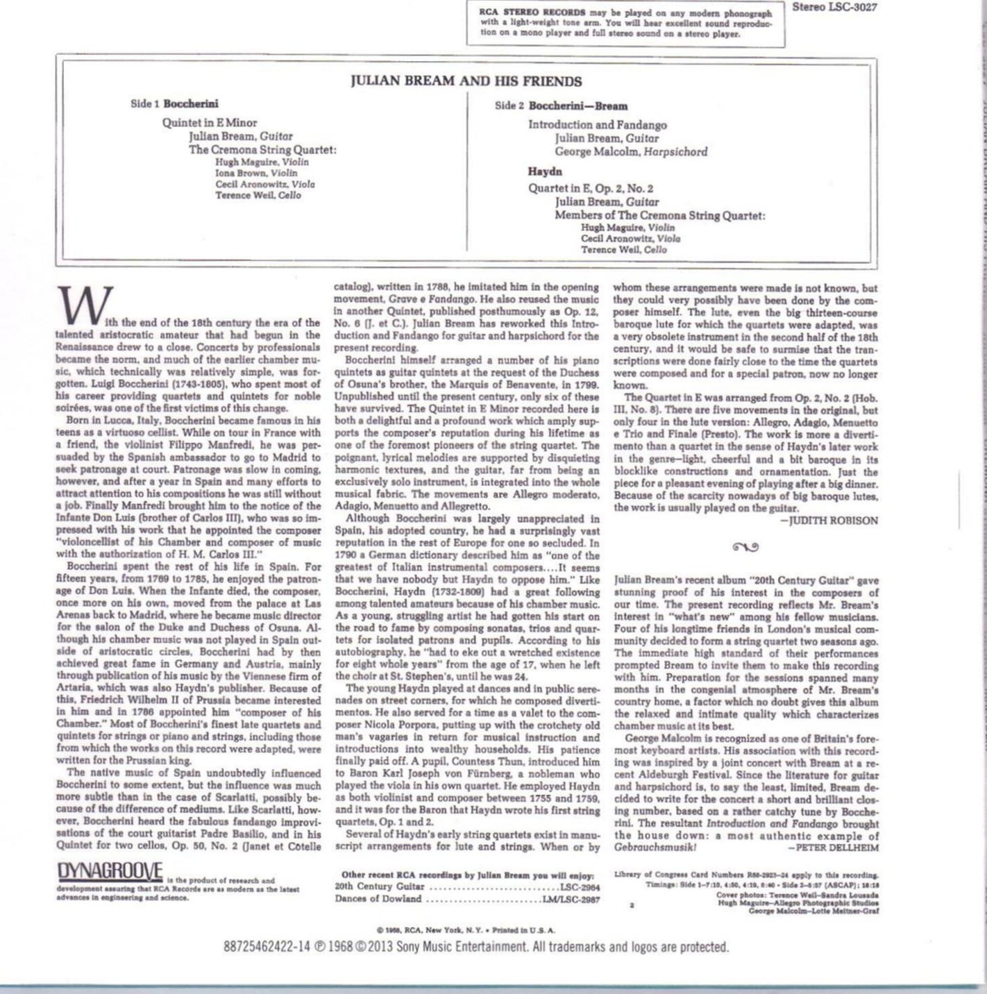 The selection from Julian Bream and His Friends included in this compilation CD is Boccherini's "Introduction & Fandango for Guitar and Harpsichord (based on Guitar Quintet in D major, G. 448)".